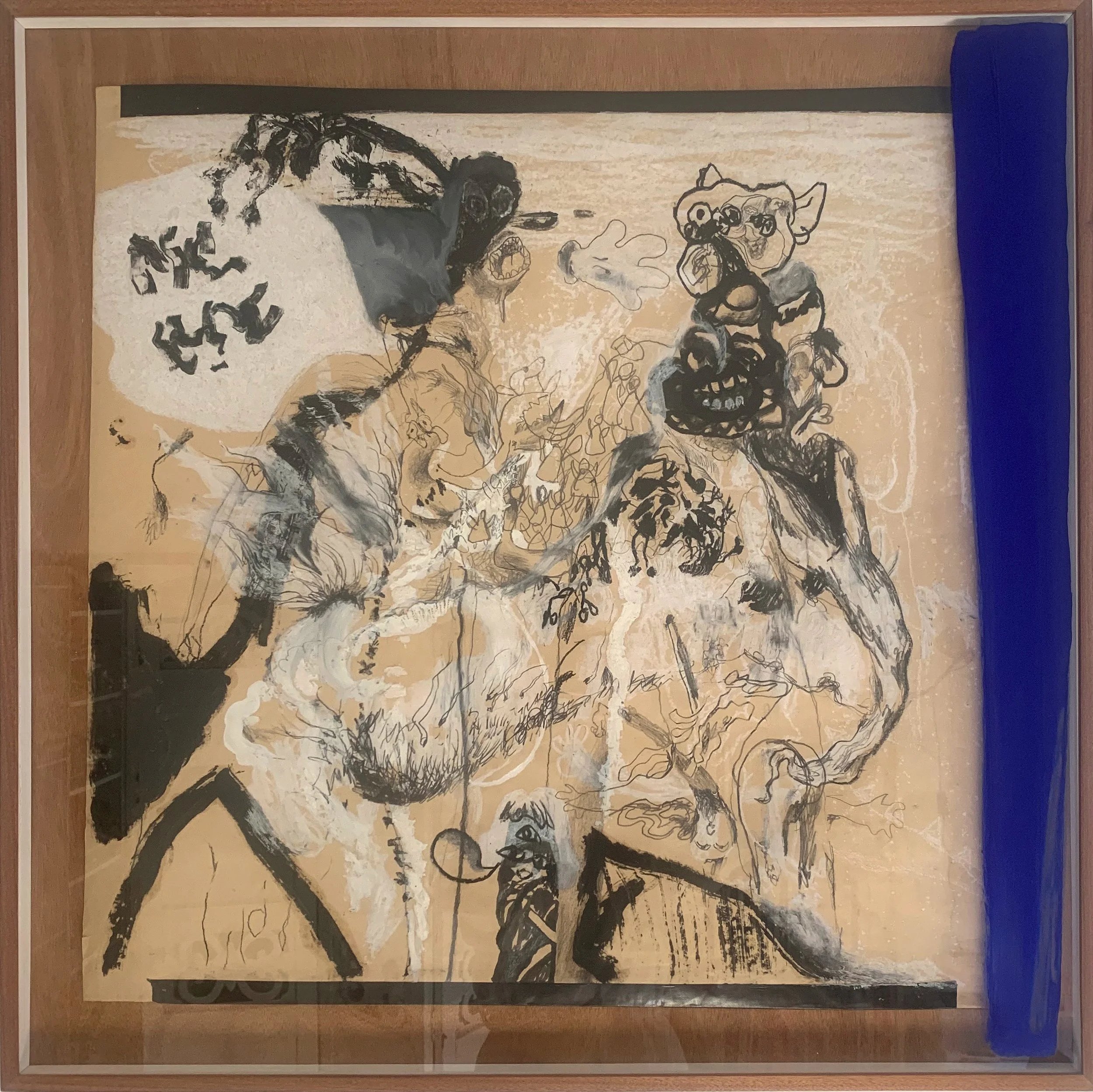Mixed media on paper + Majorelle blue on glass, 82x82 cm