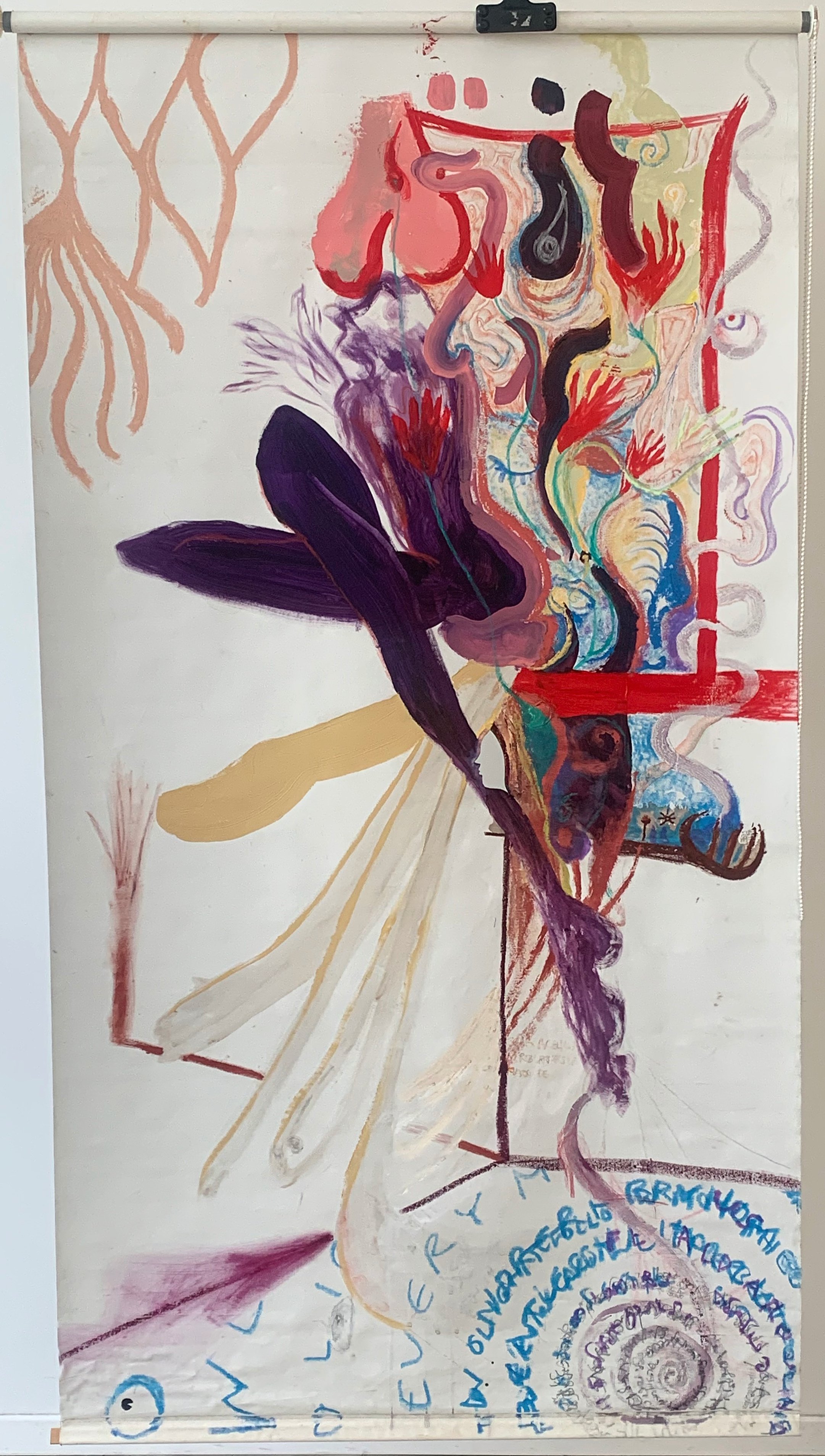 Mixed media on rolled curtain