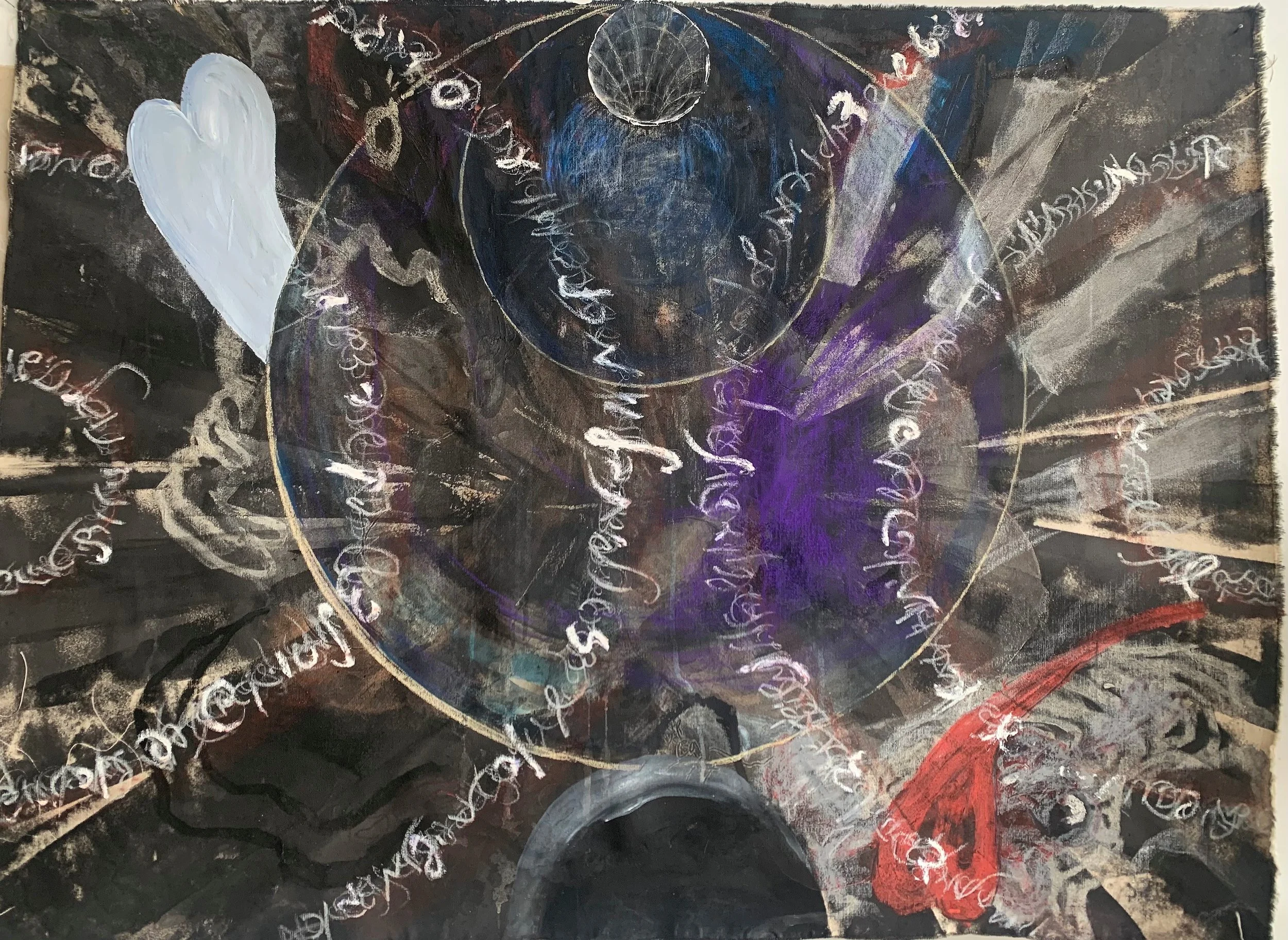 Mixed media on raw canvas
