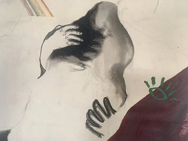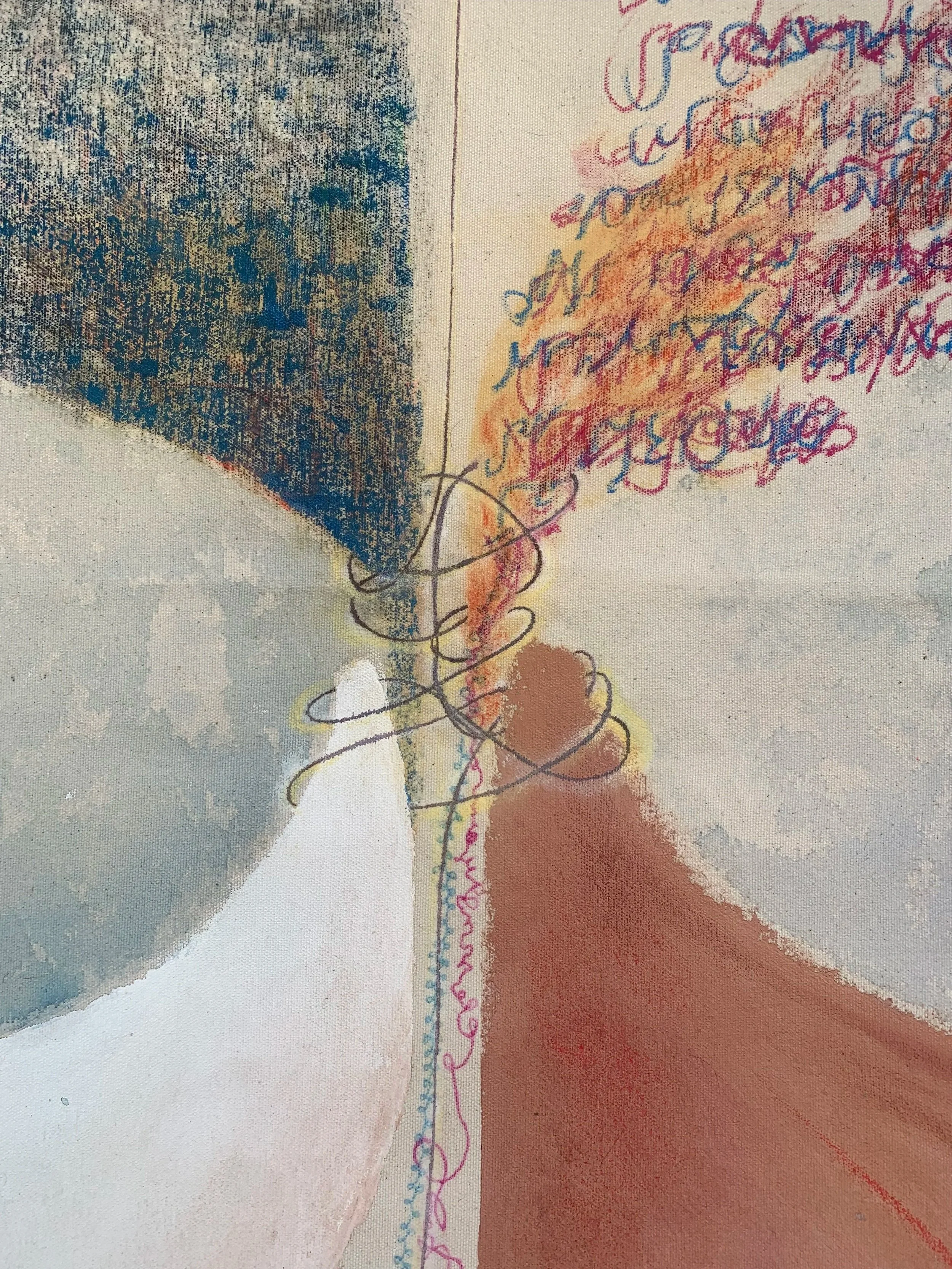 Together & in between, Mixed media on natural canvas,